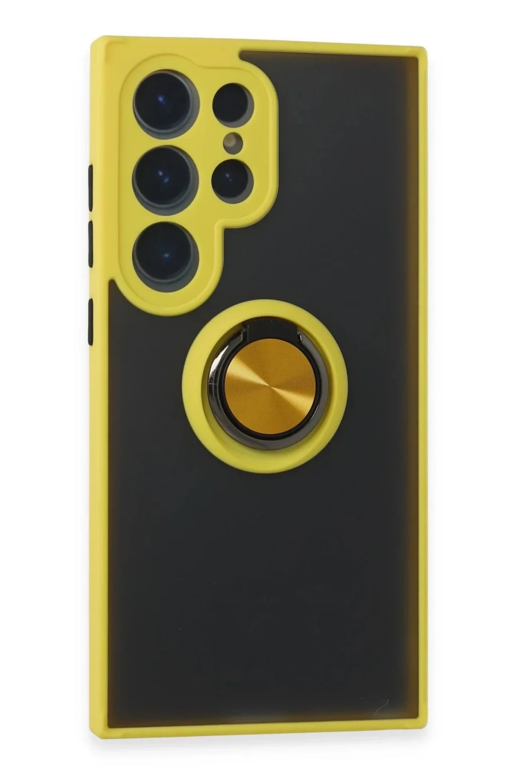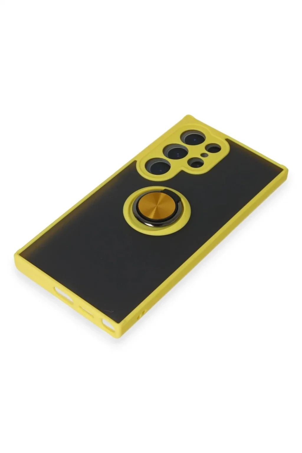 Samsung Galaxy S24 Ultra Kılıf Montreal Yüzüklü Silikon Kapak - Sarı-(5796)