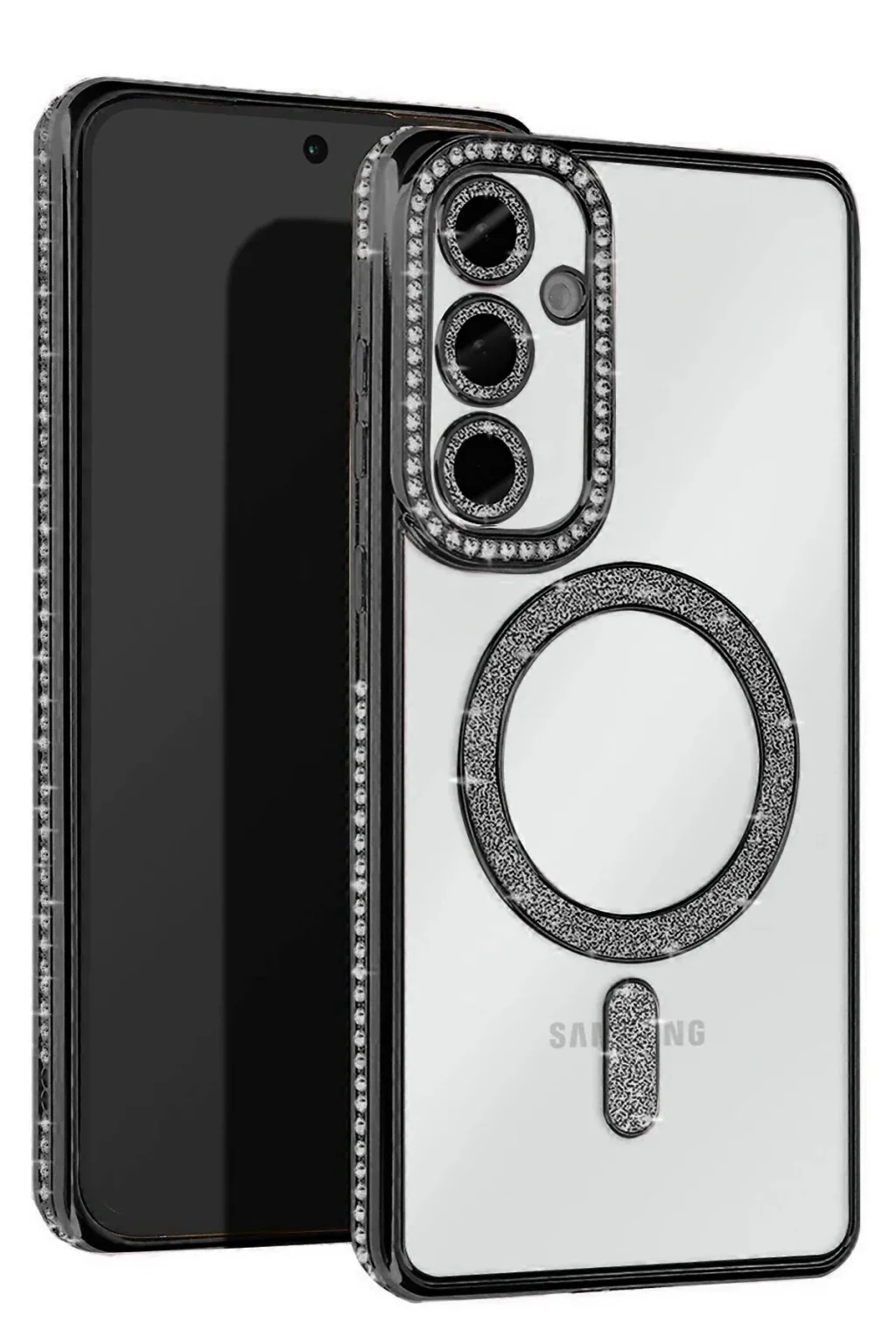 Samsung Galaxy S25 Kılıf Joke Simli Magneticsafe Kılıf - Siyah-(5796)