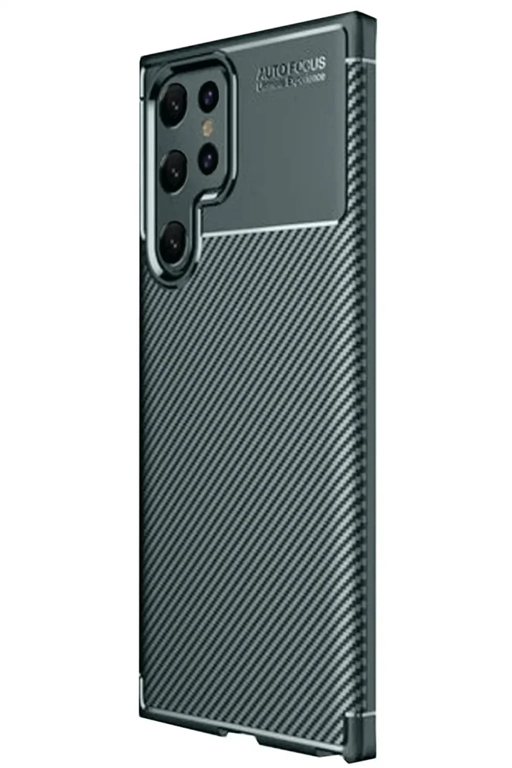 Samsung Galaxy S25 Ultra Kılıf Auto Focus Karbon Kapak - Koyu Yeşil-(5796)
