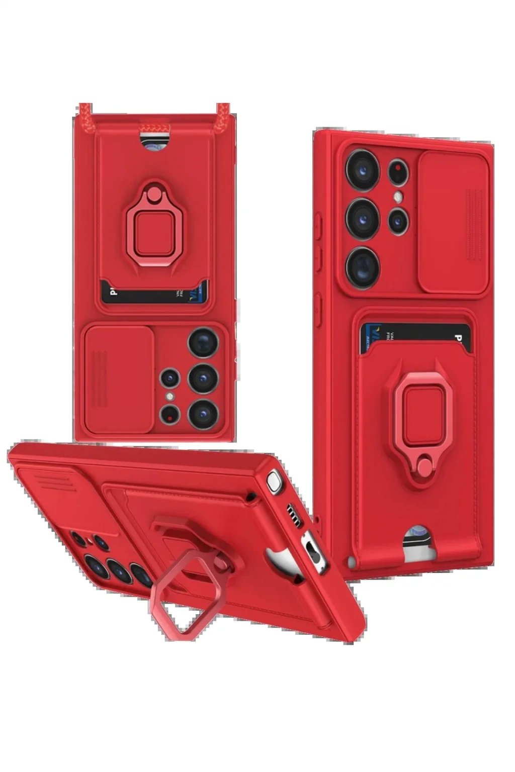 Samsung Galaxy S25 Ultra Kılıf Zuma Kartvizitli Yüzüklü Silikon - Kırmızı-(5796)