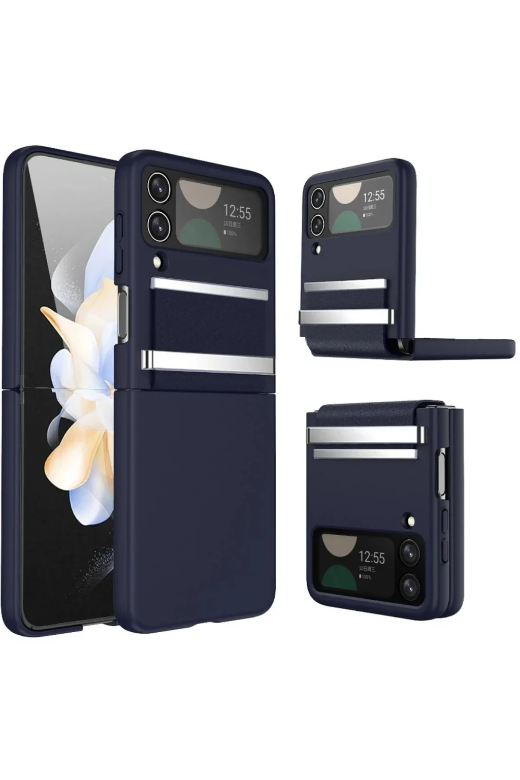 Samsung Galaxy Z Flip 4 Kılıf Belt Flip Kapak - Lacivert-(5796)