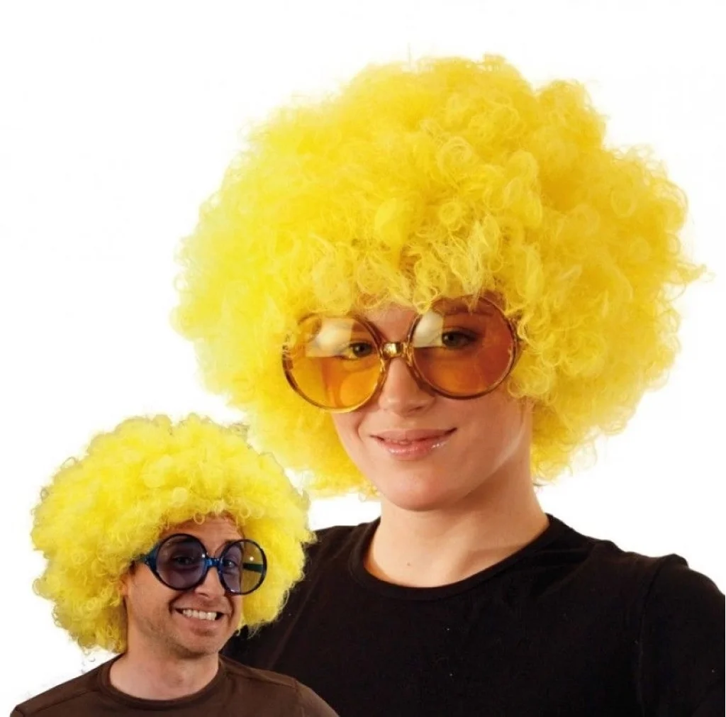 Sarı Renk Kıvırcık Afro Bonus Peruk