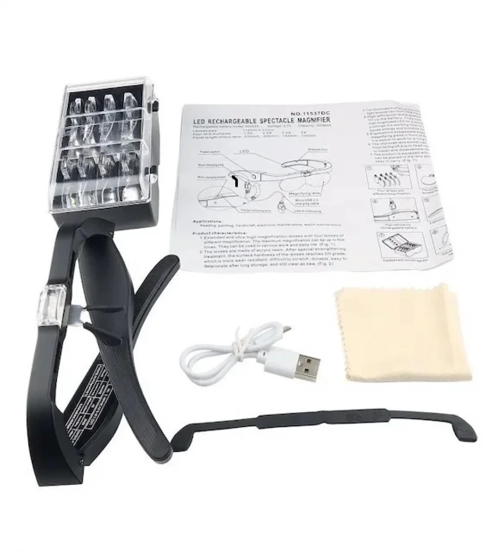 Şarjlı Gözlük Büyüteç 4 Farklı Lens 11537dc