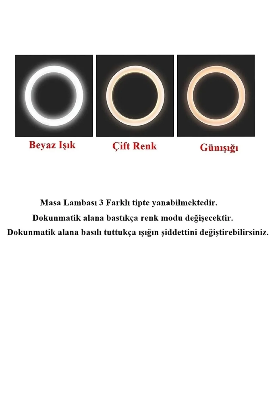 360 ° döndürülen başlığı ile nerede olursanız olun size bol ışık verir. Işığı doğrudan kitaba verirken gözünüzü rahatsız edecek bir parlaklıkta değildir. İşle ilgili çalışmalar için de hareket ettirilebilir ve daha güçlü ışığı ile çalışma masası lambası olarak kullanılır. Doğal ışık dağınık yansımayı simüle eder, birden fazla gölgeyi azaltır, net görüntü, yumuşak ışık ile gözlerinizi rahatsız etmez. Masa lambaları genellikle kitap okumak, ders çalışmak ile birlikte proje çizmek, rapor hazırlamak, evrak düzenlemek gibi işler için kullanılır.  Çok pratik, iyi bir aydınlatma için 360° döndürülen başlığı ile aydınlatma sağlar ve ortamı daha iyi aydınlatır, 3 kademeli dokununca ışık seviyesini ayarlayarak gözlerinizi yormadan ortamın aydınlatmasını sağlayabilirsiniz.
