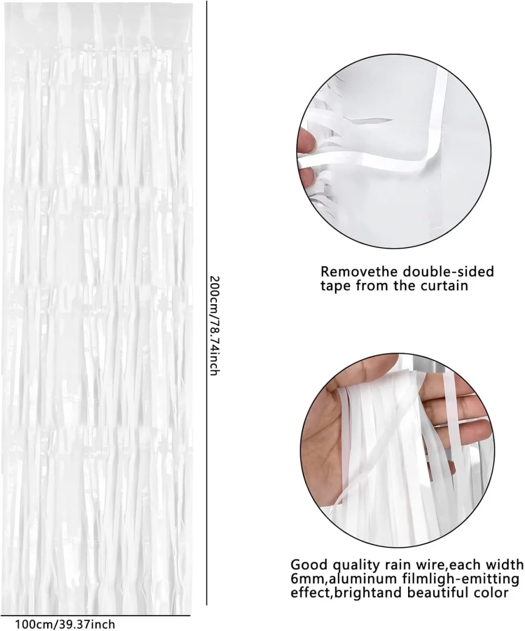Parti organizasyonlarınızda sadece kapı değil duvar, perde gibi alanları da süsleyebileceğiniz Işıltılı Beyaz Püsküllü Perde.