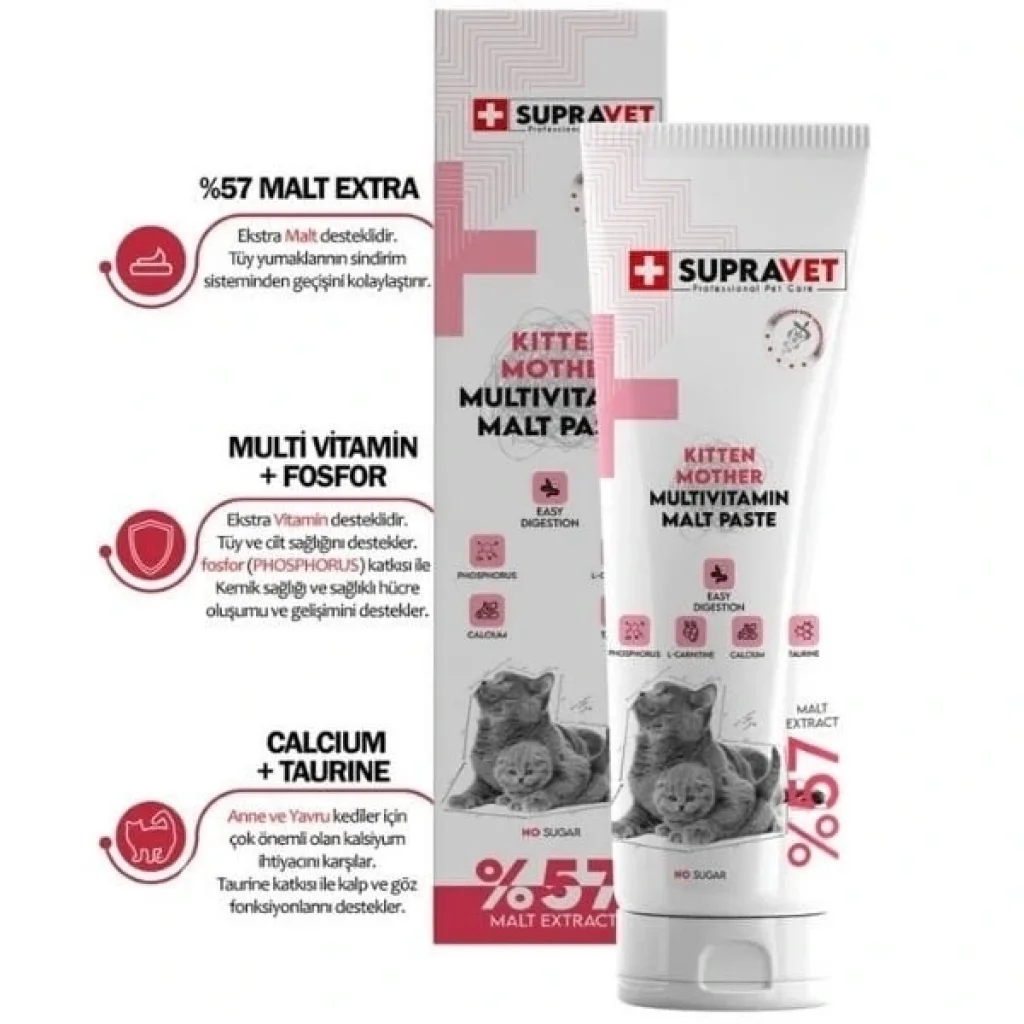 Supravet Kalsiyum ve Taurinli Hamile ve Yavru Kediler için Multi Vitamin Kedi Malt Macunu 30 Gr