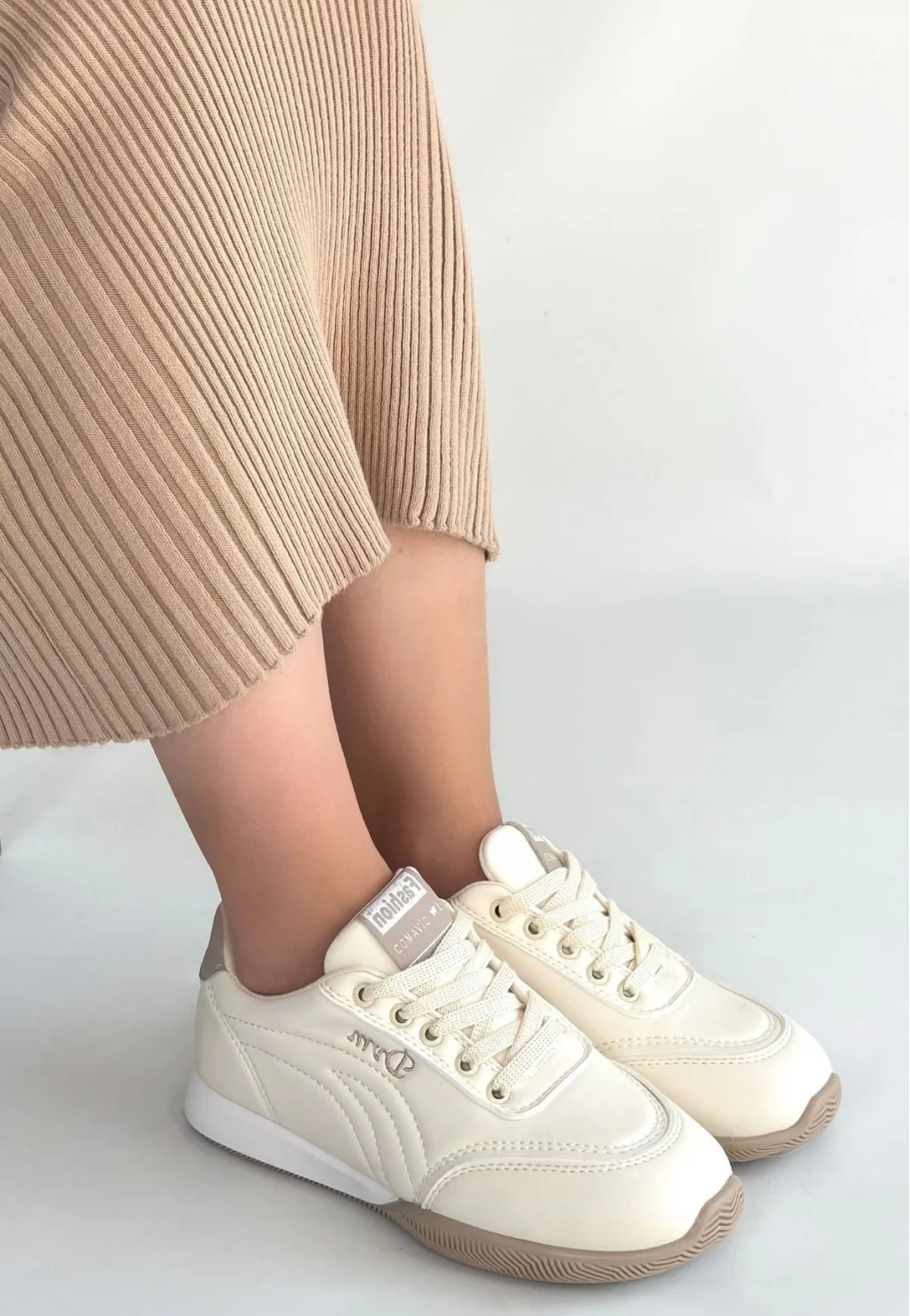 Tawen Bej Cilt Bağcıklı Spor Ayakkabı