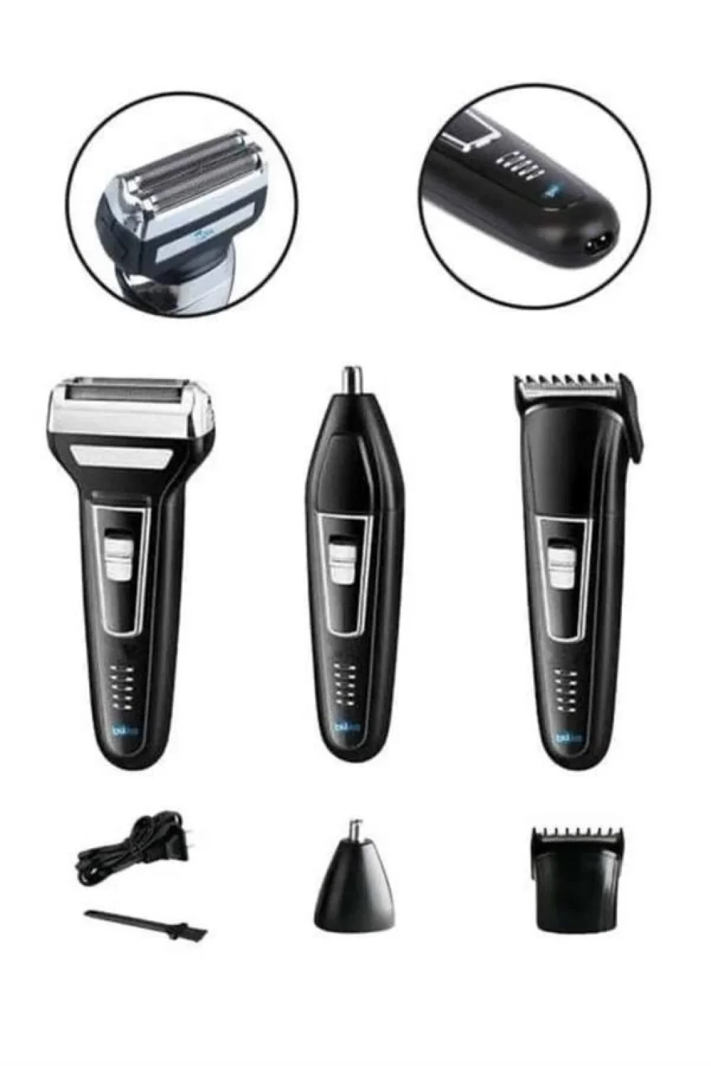 Tıraş Makinesi 3 Başlıklı T Başlıklı Hassas Ciltlere Özel Saç Sakal Vücut Kulak ve Burun