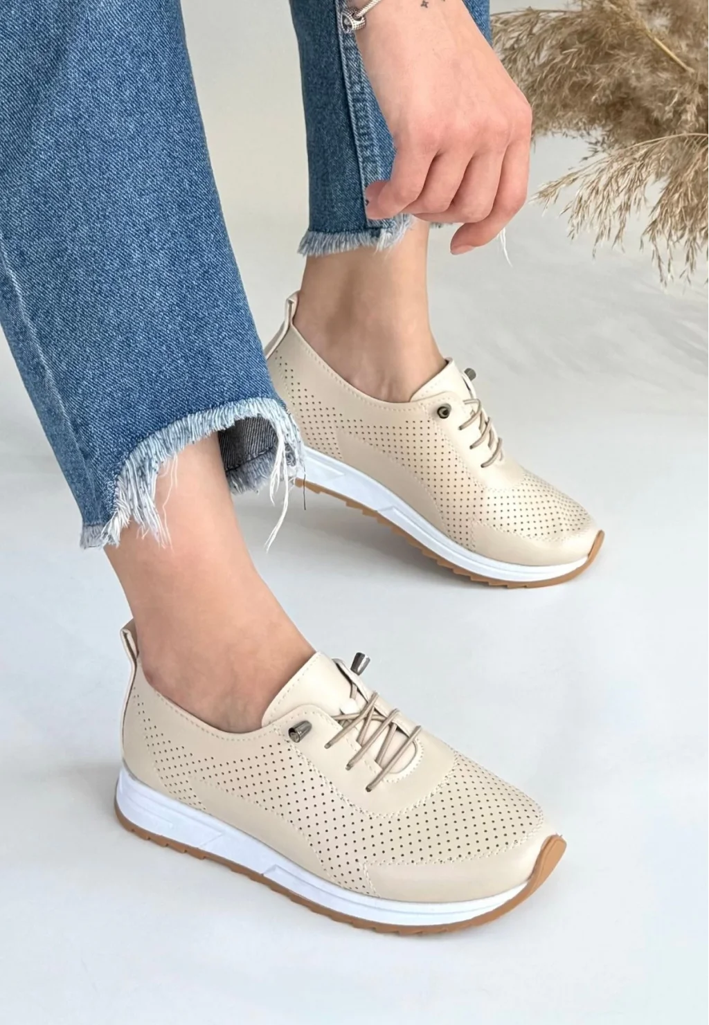 Tone Bej Cilt Bağcıklı Spor Ayakkabı