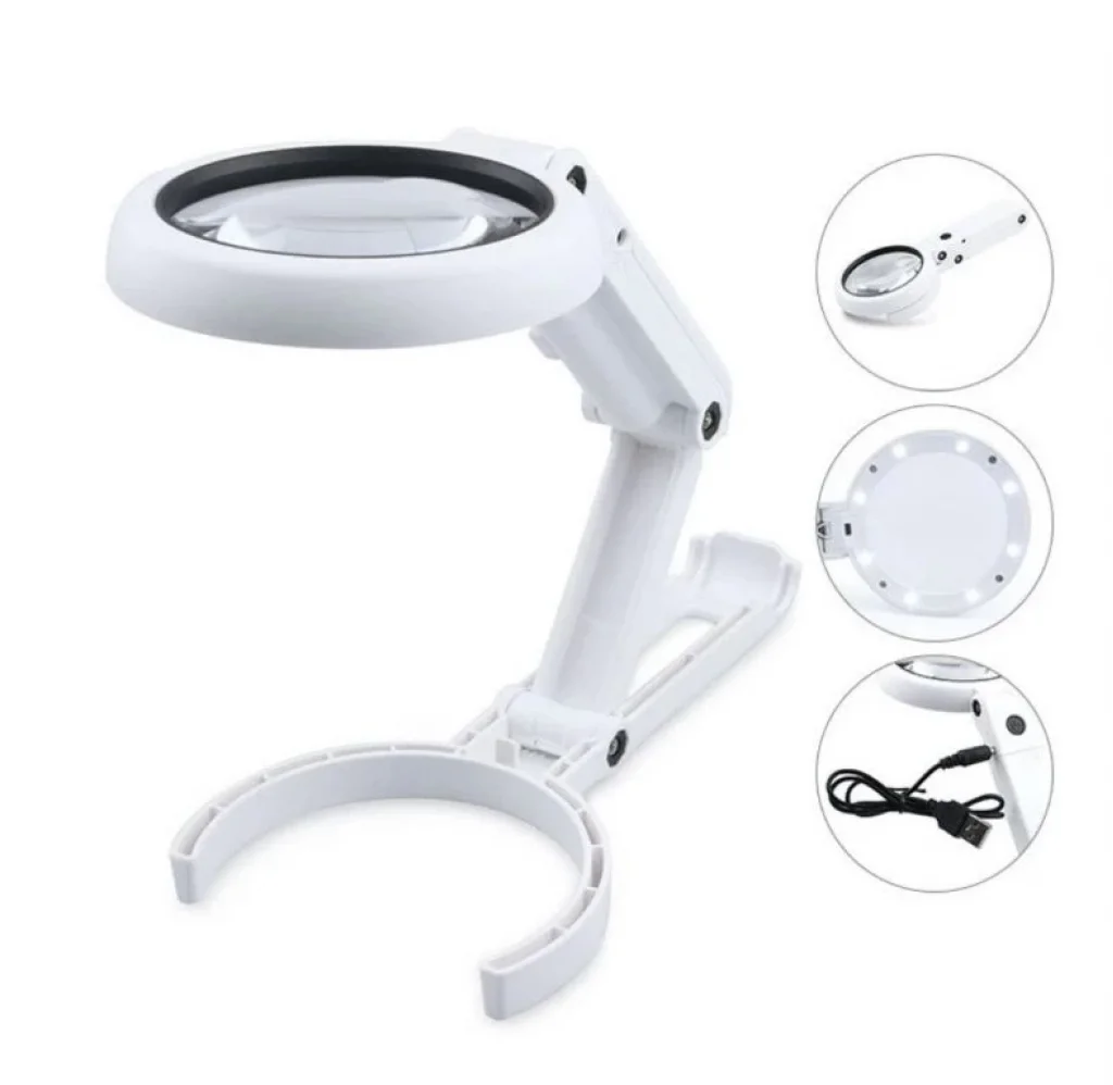 Usb Şarj Edilebilir Katlanabilir 3.510x Büyüteç 8 Ledli Masa Ve Eliçin Taşınabilir Büyüteç Fs90rc