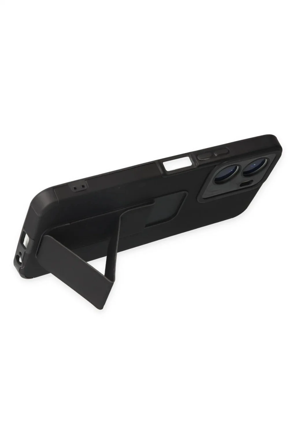 Vivo Y16 Kılıf Mega Standlı Silikon - Siyah-(5796)