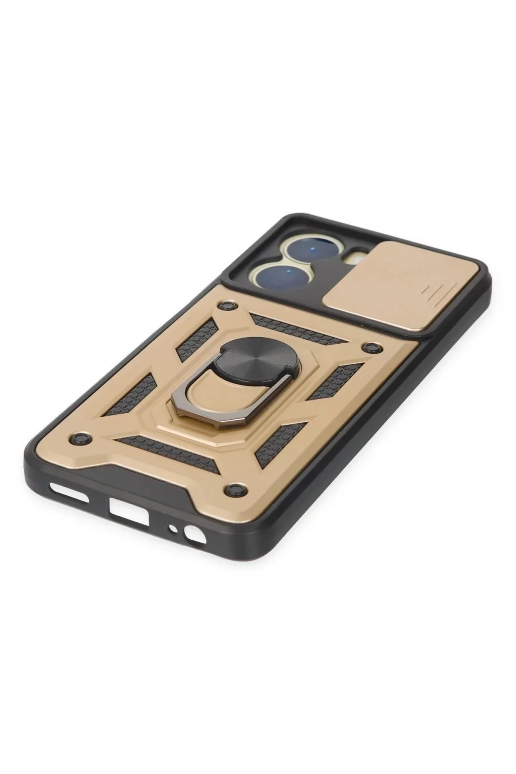Vivo Y16 Kılıf Pars Lens Yüzüklü Silikon - Gold-(5796)