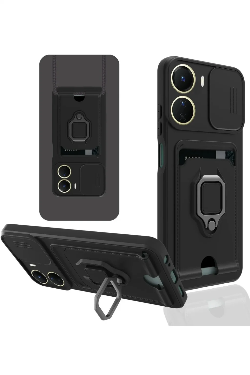 Vivo Y16 Kılıf Zuma Kartvizitli Yüzüklü Silikon - Siyah-(5796)