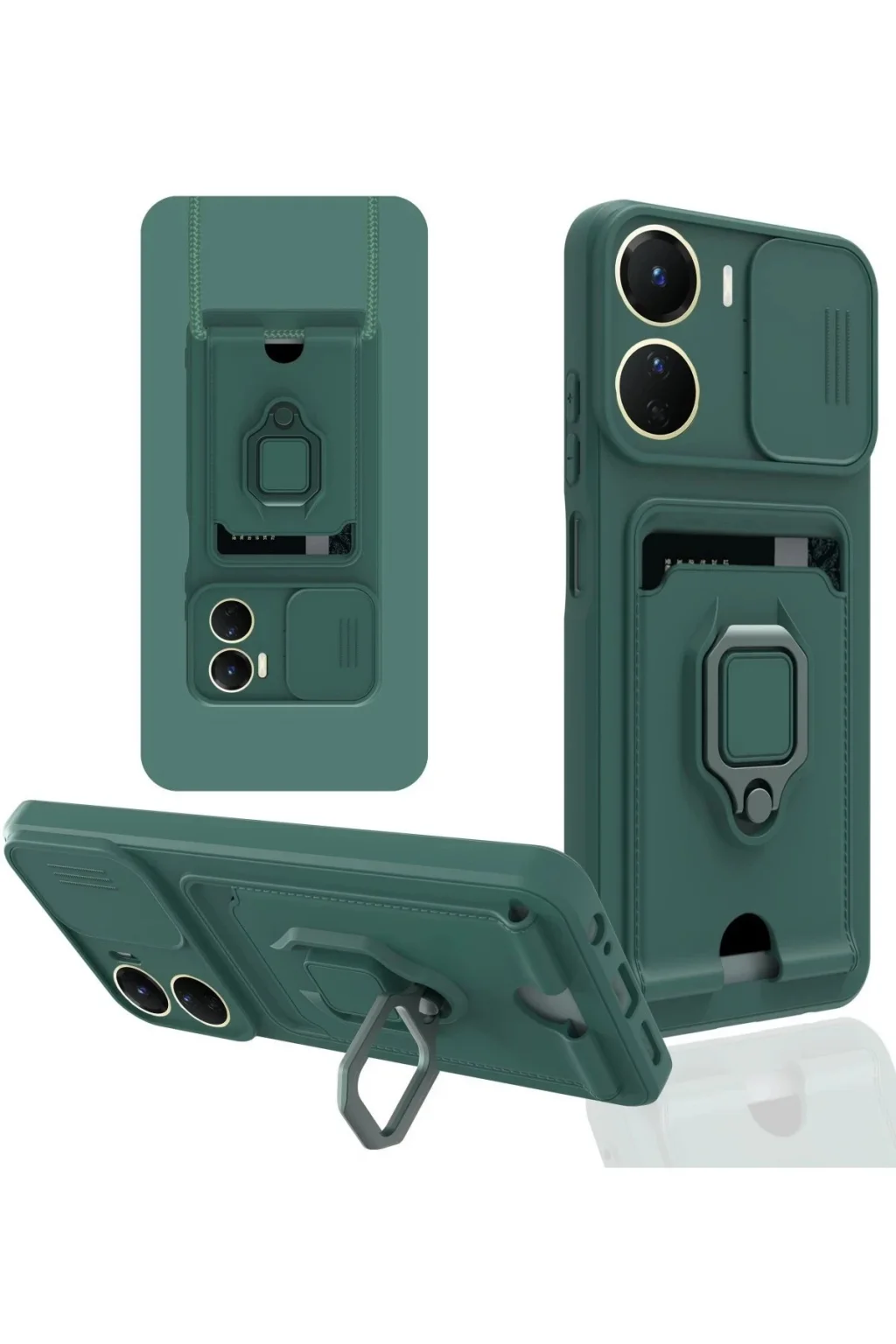 Vivo Y16 Kılıf Zuma Kartvizitli Yüzüklü Silikon - Yeşil-(5796)