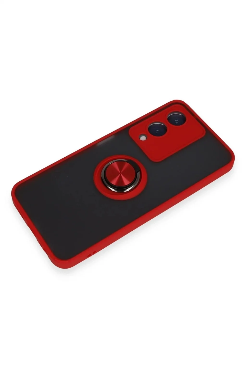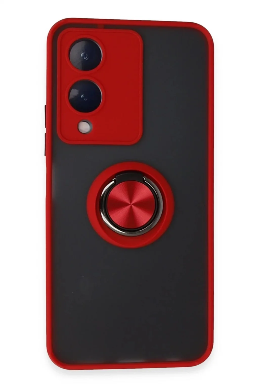 Vivo Y17S Kılıf Montreal Yüzüklü Silikon Kapak - Kırmızı-(5796)