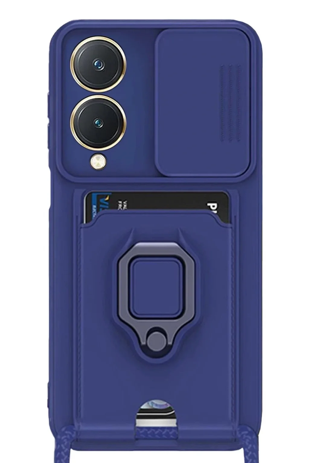 Vivo Y17S Kılıf Zuma Kartvizitli Yüzüklü Silikon - Lacivert-(5796)