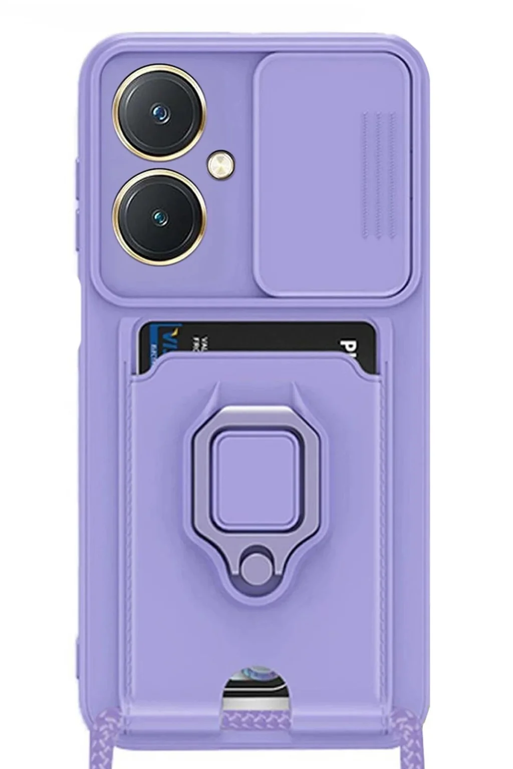 Vivo Y27 Kılıf Zuma Kartvizitli Yüzüklü Silikon - Lila-(5796)