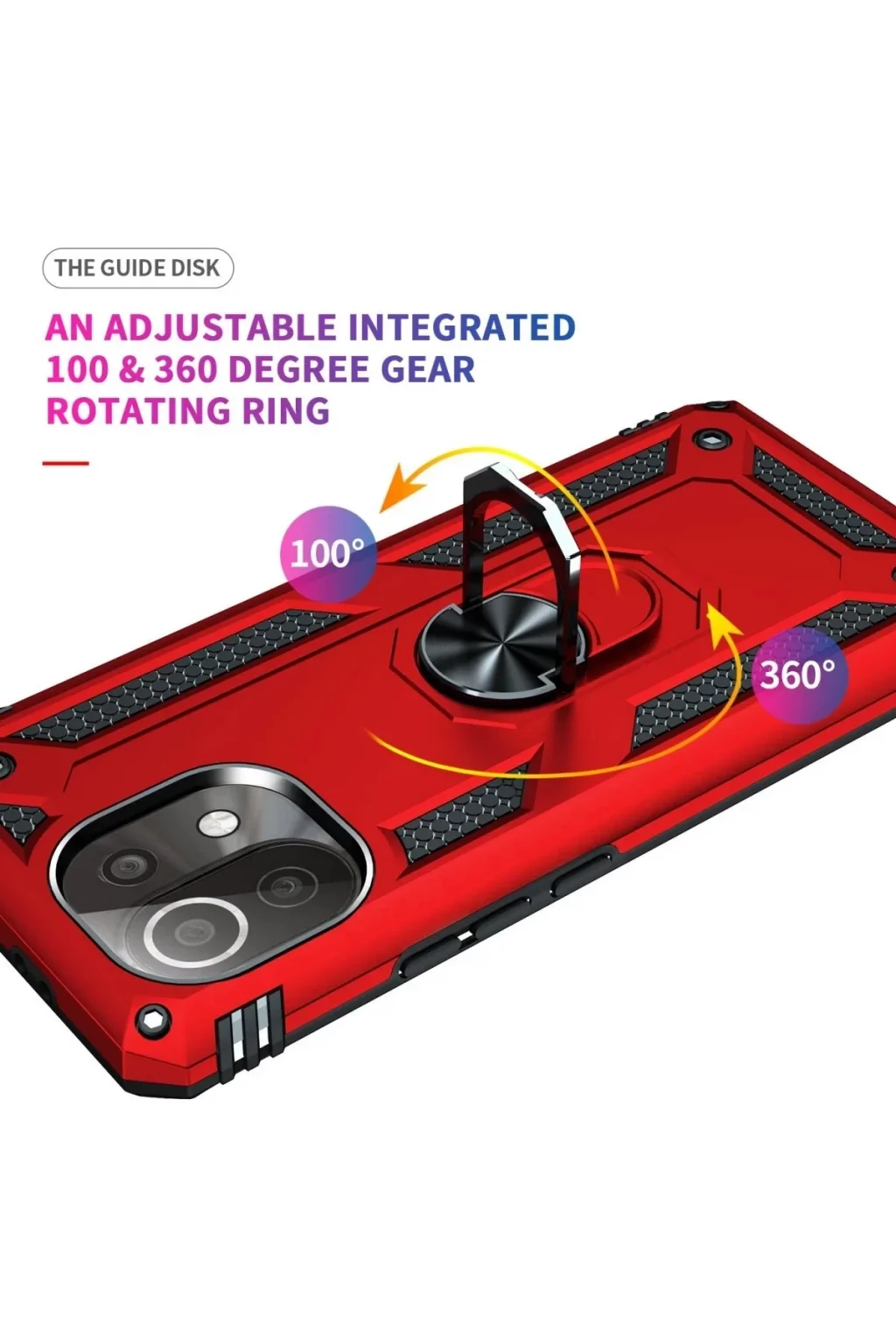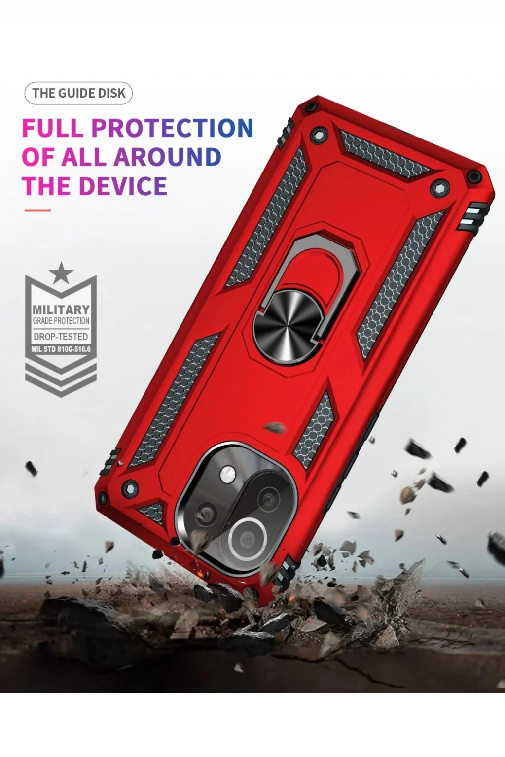 Xiaomi Mİ 11 Lite Kılıf Sofya Yüzüklü Silikon Kapak - Kırmızı-(5796)