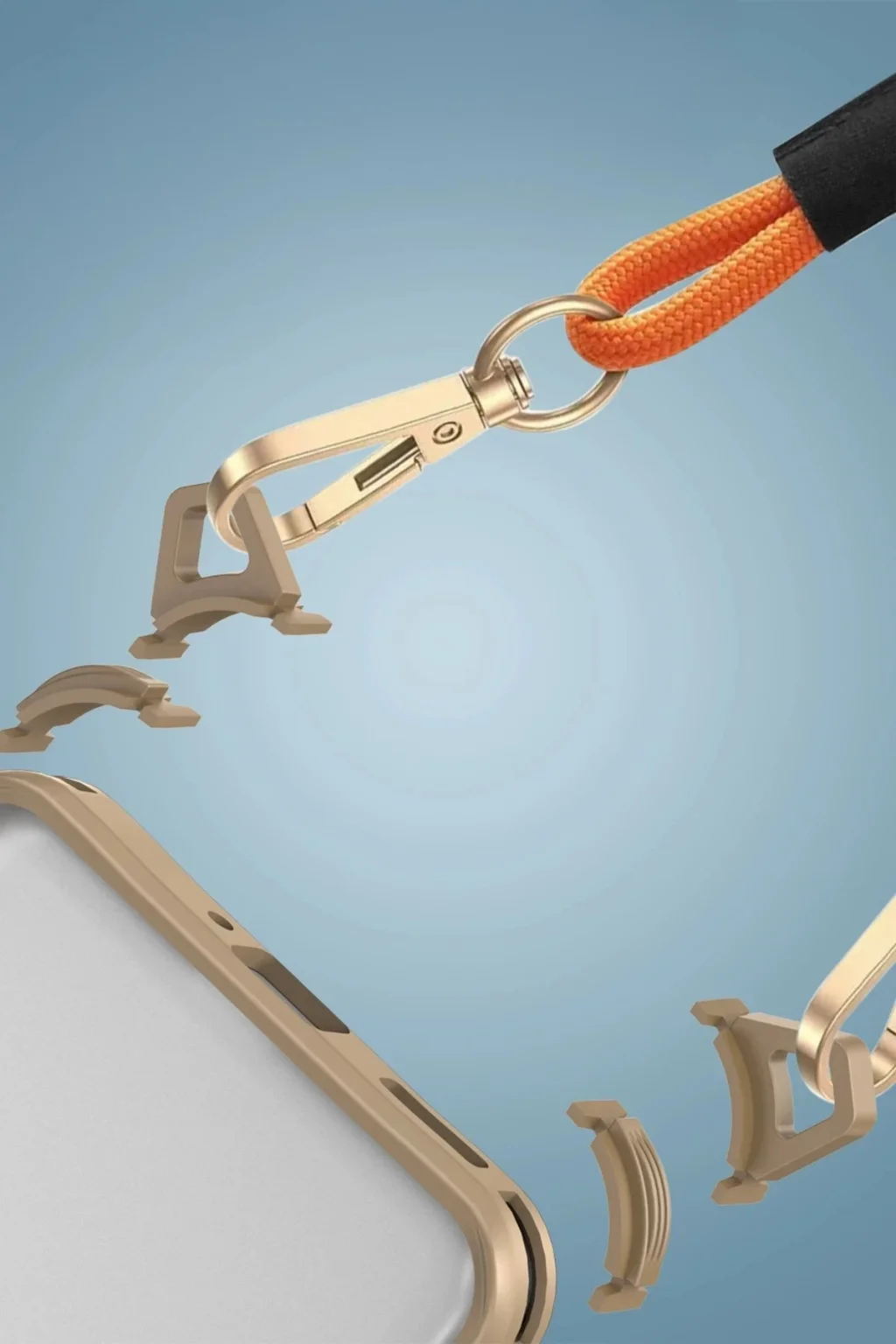 Kılıfın alt kısmındaki değiştirilebilir bağlantı noktaları sayesinde askı aparatı kolayca takılıp çıkarılabilir