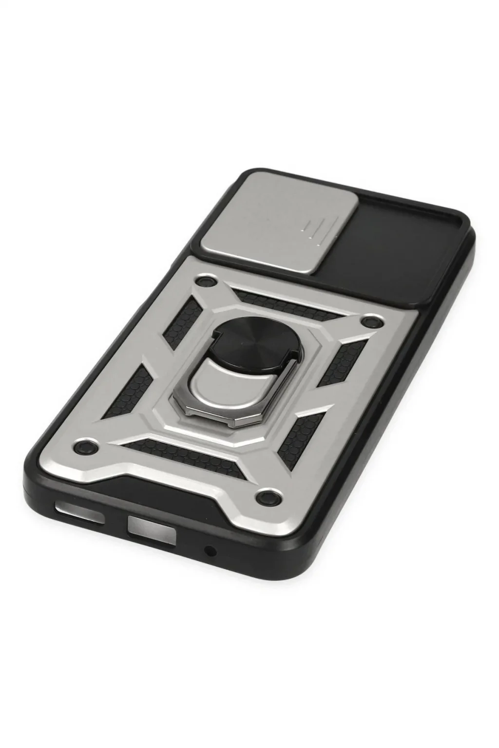 Xiaomi Poco M5 Kılıf Pars Lens Yüzüklü Silikon - Gümüş-(5796)