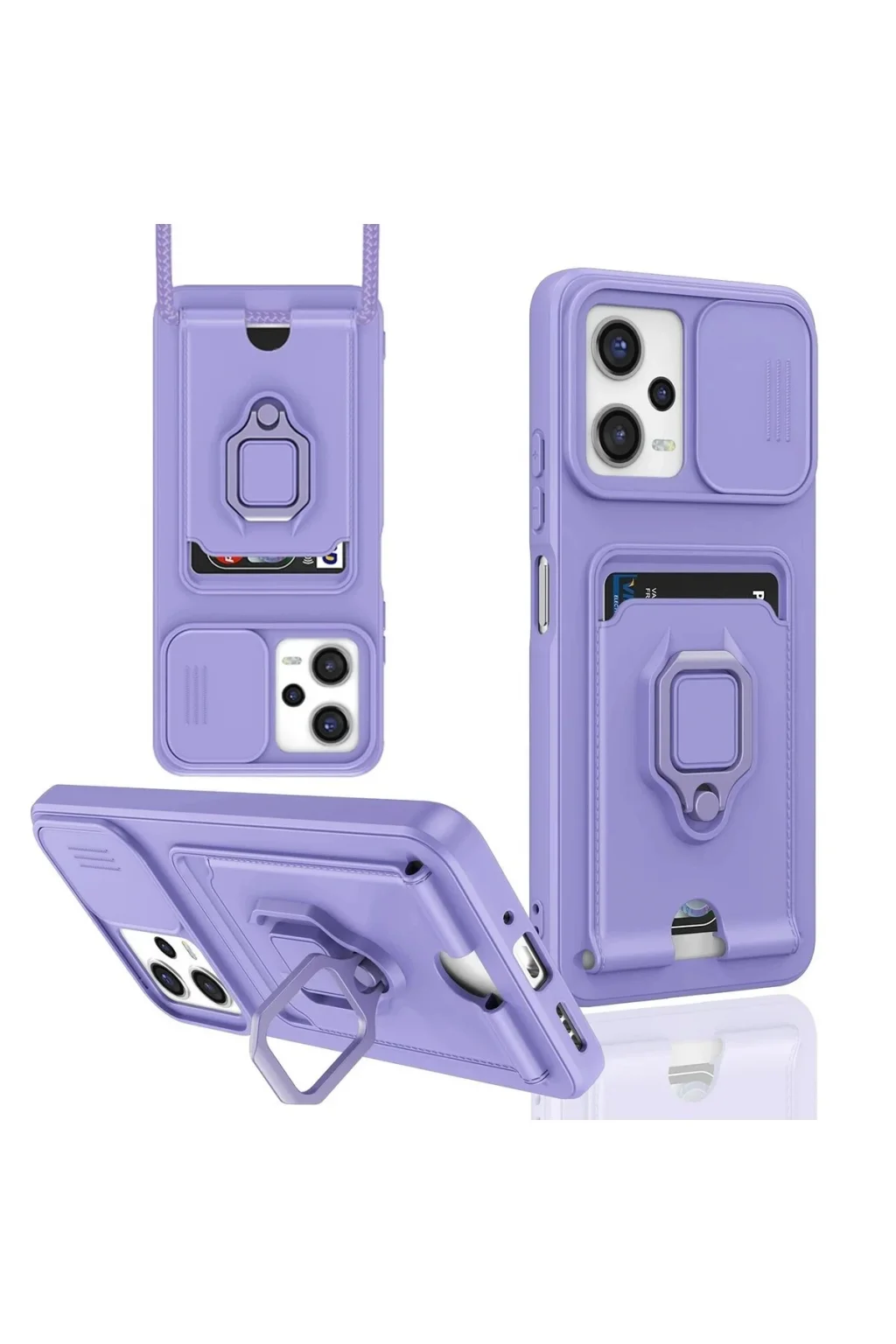 Xiaomi Poco X5 5G Kılıf Zuma Kartvizitli Yüzüklü Silikon - Lila-(5796)