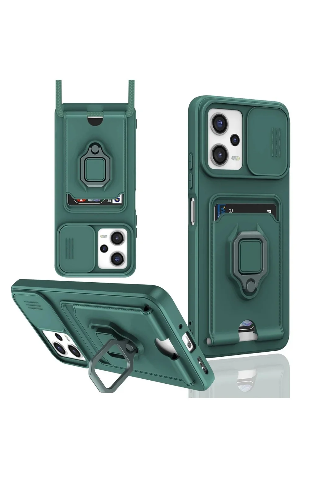 Xiaomi Poco X5 5G Kılıf Zuma Kartvizitli Yüzüklü Silikon - Yeşil-(5796)