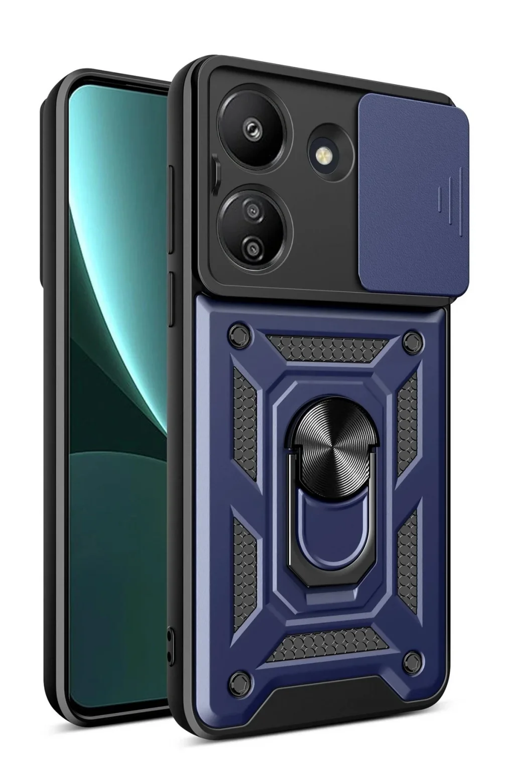 Xiaomi Redmi 13C Kılıf Pars Lens Yüzüklü Silikon - Lacivert-(5796)