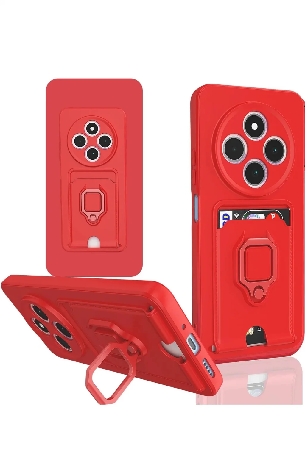Xiaomi Redmi 14C Kılıf Zuma Kartvizitli Yüzüklü Silikon - Kırmızı-(5796)