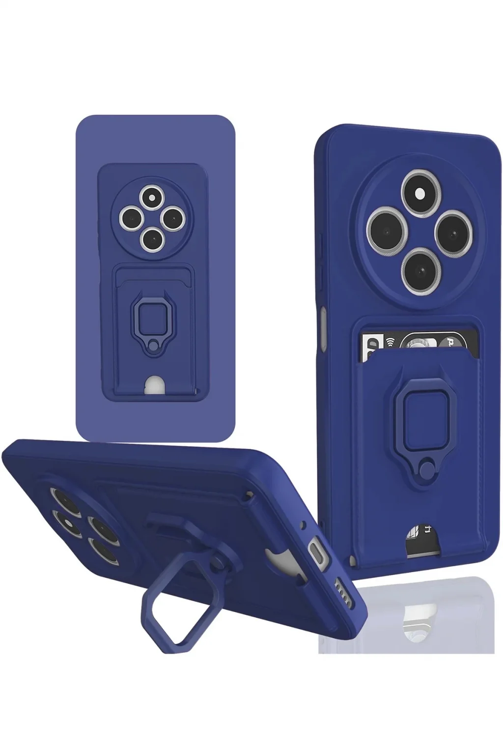 Xiaomi Redmi 14C Kılıf Zuma Kartvizitli Yüzüklü Silikon - Lacivert-(5796)