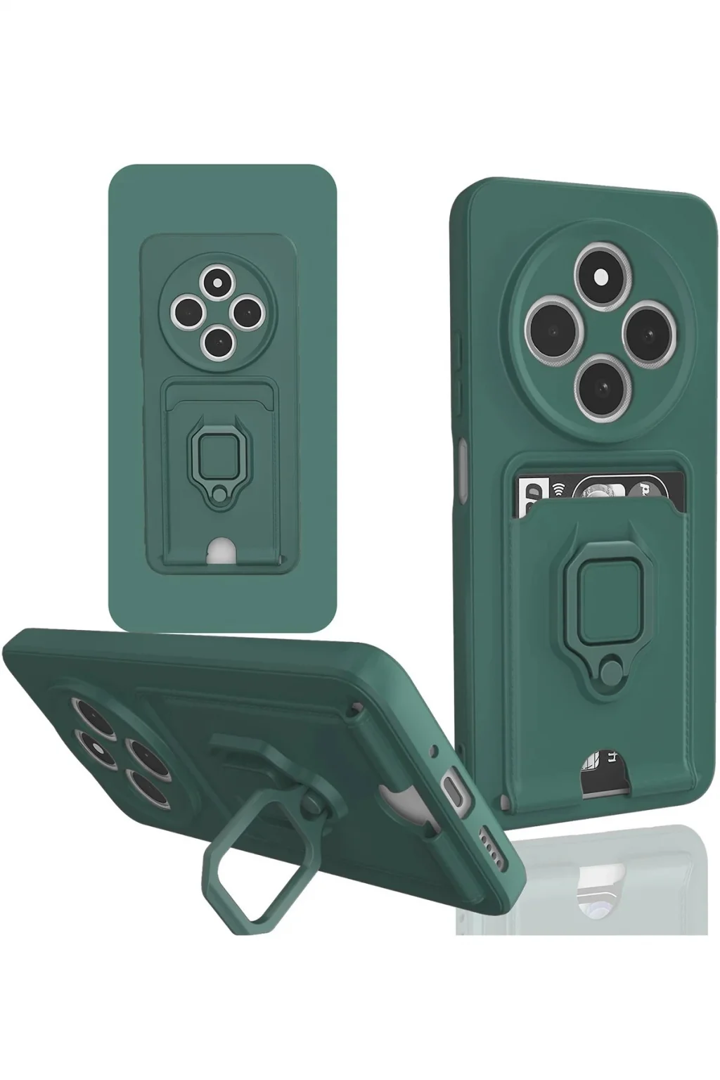 Xiaomi Redmi 14C Kılıf Zuma Kartvizitli Yüzüklü Silikon - Yeşil-(5796)