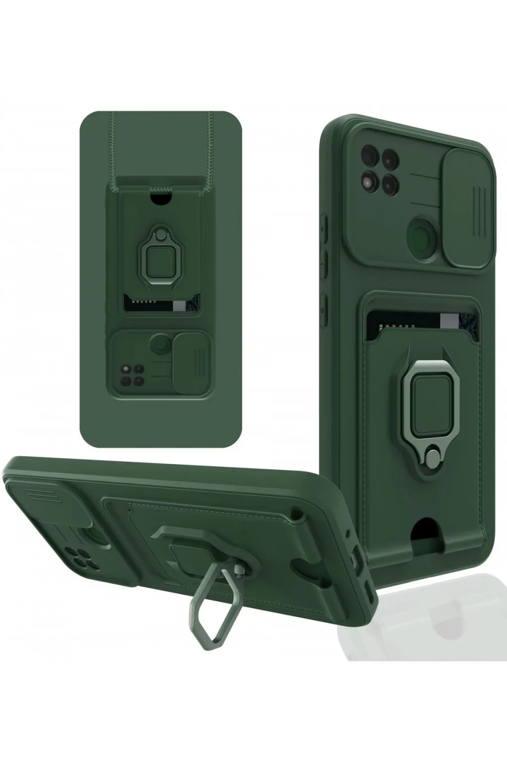 Xiaomi Redmi 9C Kılıf Zuma Kartvizitli Yüzüklü Silikon - Yeşil-(5796)