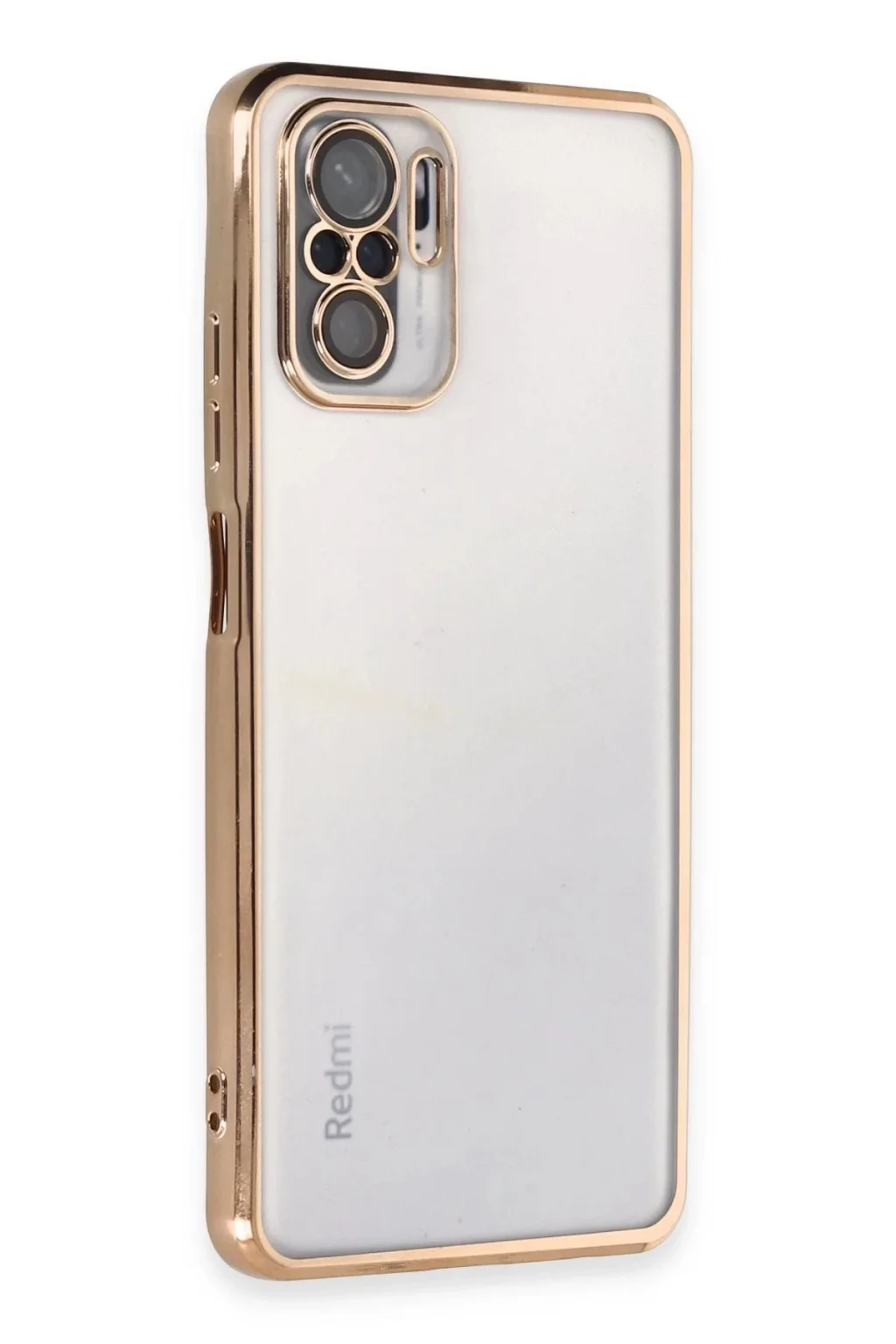 Xiaomi Redmi Note 10 Kılıf Lensli Silikon - Gold-(5796)