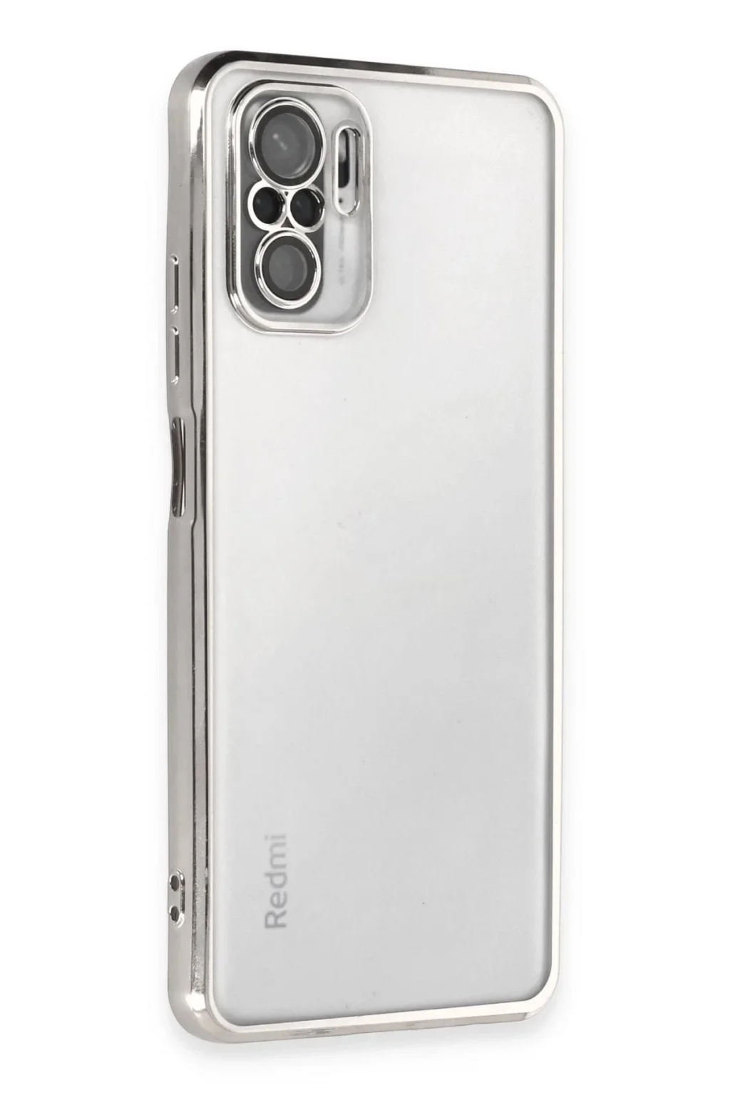 Xiaomi Redmi Note 10 Kılıf Lensli Silikon - Gümüş-(5796)