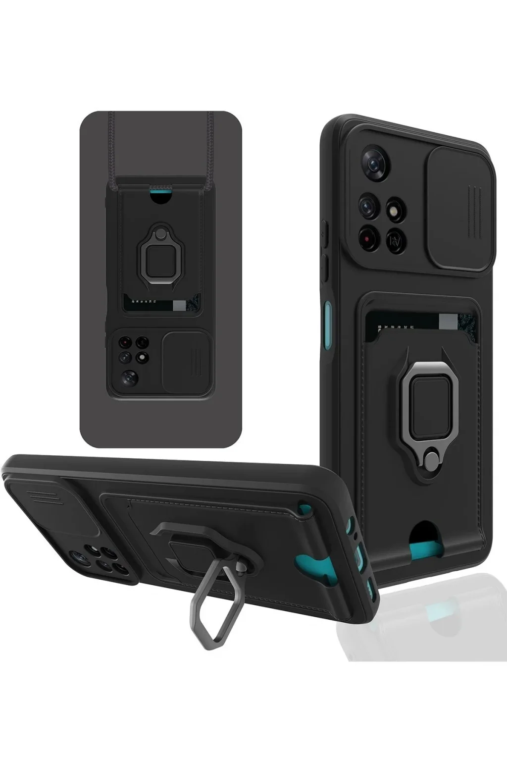 Xiaomi Redmi Note 11T Kılıf Zuma Kartvizitli Yüzüklü Silikon - Siyah-(5796)