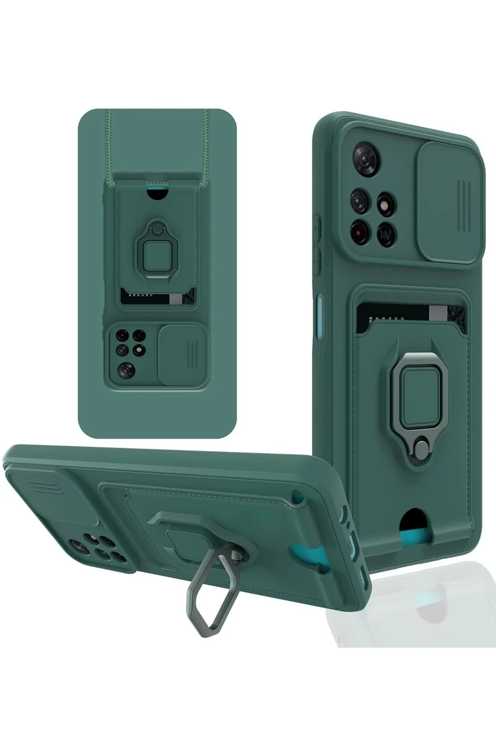 Xiaomi Redmi Note 11T Kılıf Zuma Kartvizitli Yüzüklü Silikon - Yeşil-(5796)