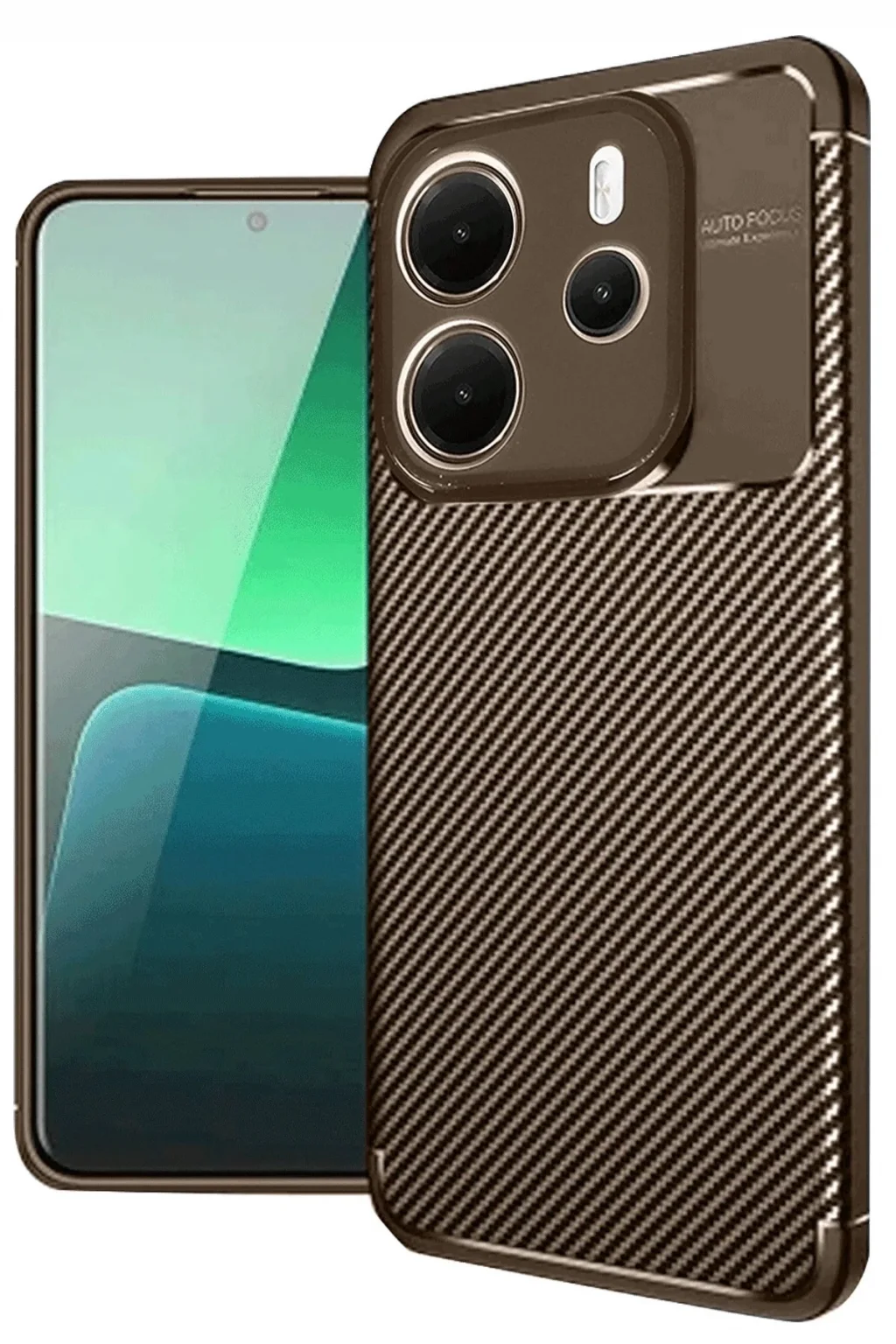 Xiaomi Redmi Note 14 4G Kılıf Auto Focus Karbon Kapak - Kahverengi-(5796)