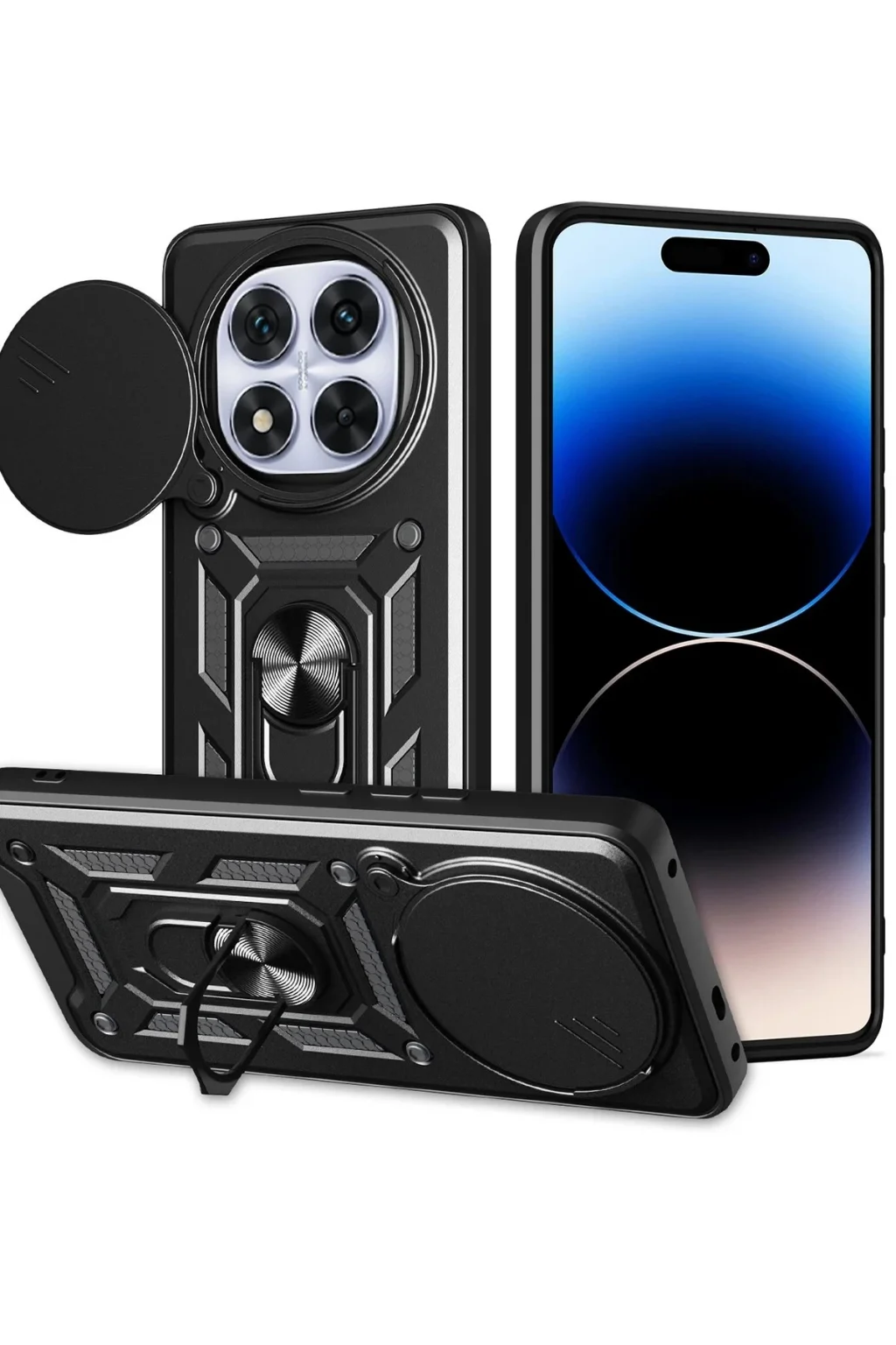 Xiaomi Redmi Note 14 Pro Plus Kılıf Pars Lens Yüzüklü Silikon - Siyah-(5796)
