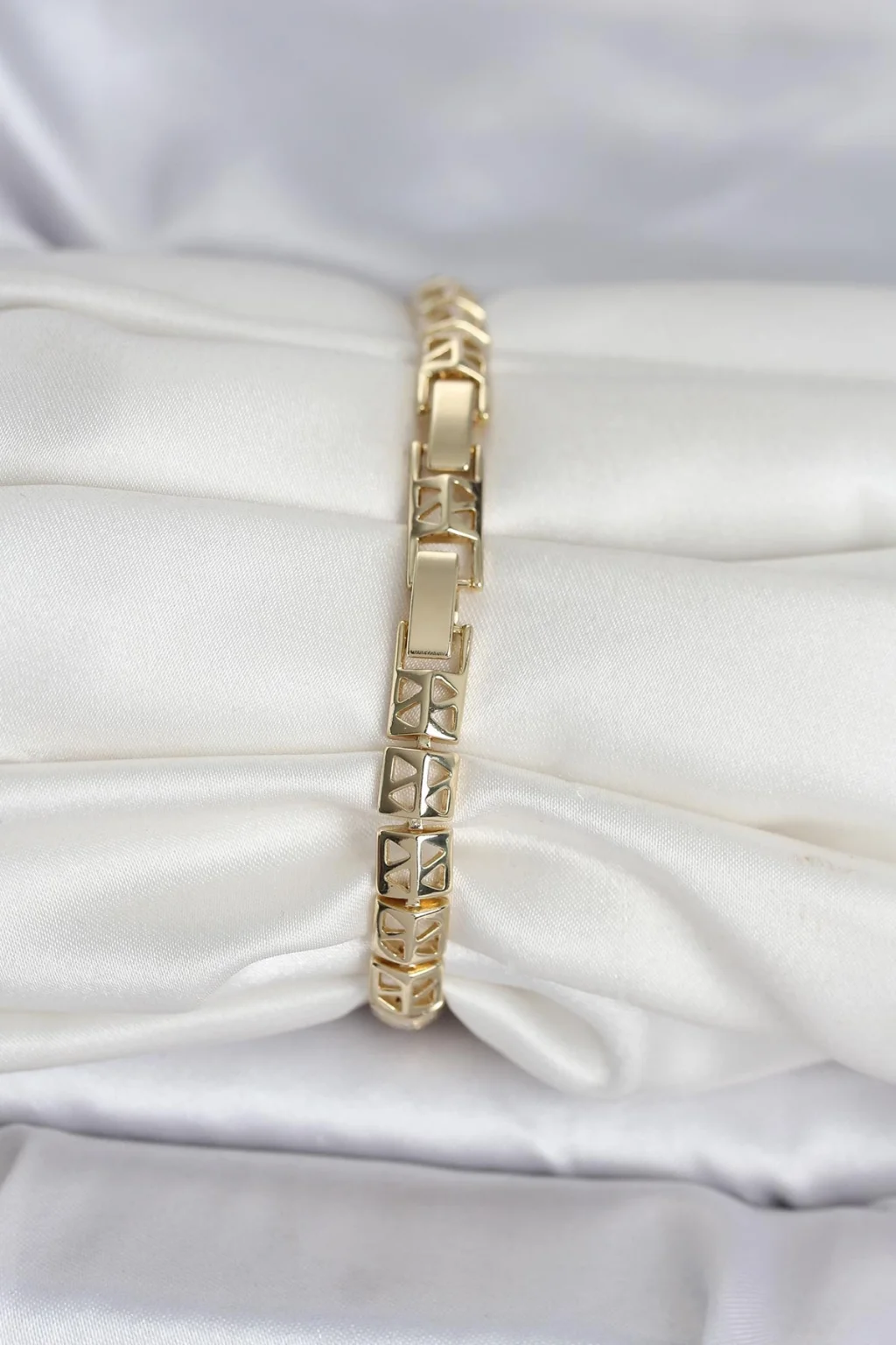 Pirinç Gold Renk Petek Model Zirkon Taşlı Kadın Bileklik