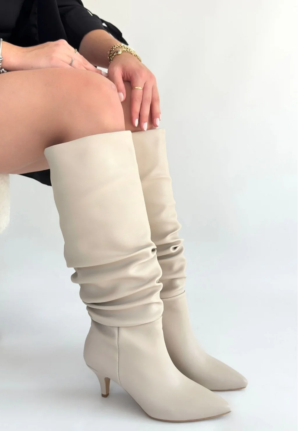 Detay : Topuklu Diz Altı Körüklü Çizme
